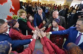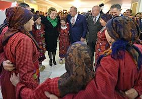 Председатель Совета Федерации России Валентина Матвиенко (справа) с участницами ансамбля…