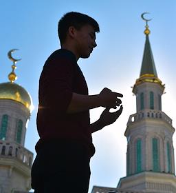 Праздник Ураза-Байрам. Верующие у Московской Соборной мечети.