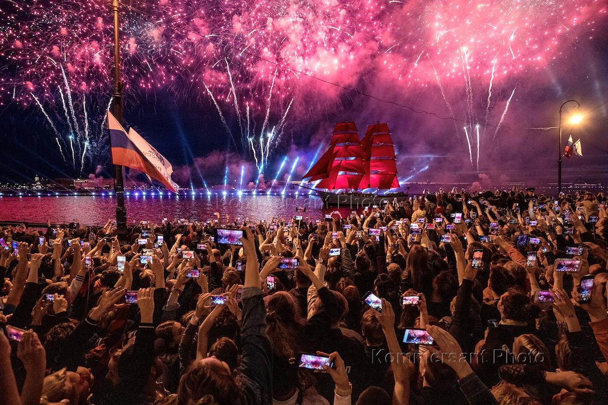 Праздник выпускников "Алые паруса". Зрители на Дворцовой набережной.
