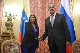 Министр иностранных дел России Сергей Лавров (справа) и вице-президент Венесуэлы Делси Родригес…