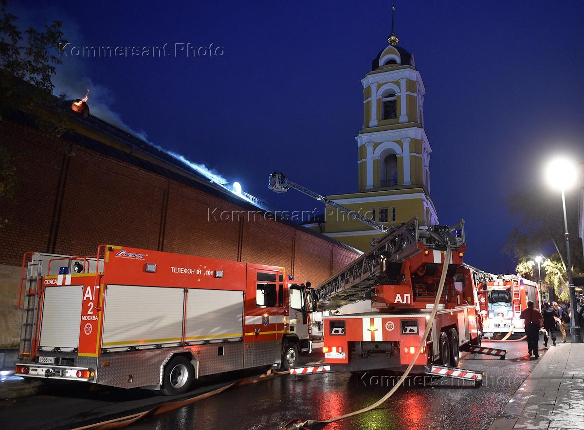 Пожар в Богородице-Рождественском женском монастыре. Сотрудники МЧС России во время тушения пожара.