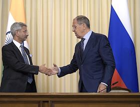 Министр иностранных дел России Сергей Лавров (справа) и министр иностранных дел Индии Субраманиям…