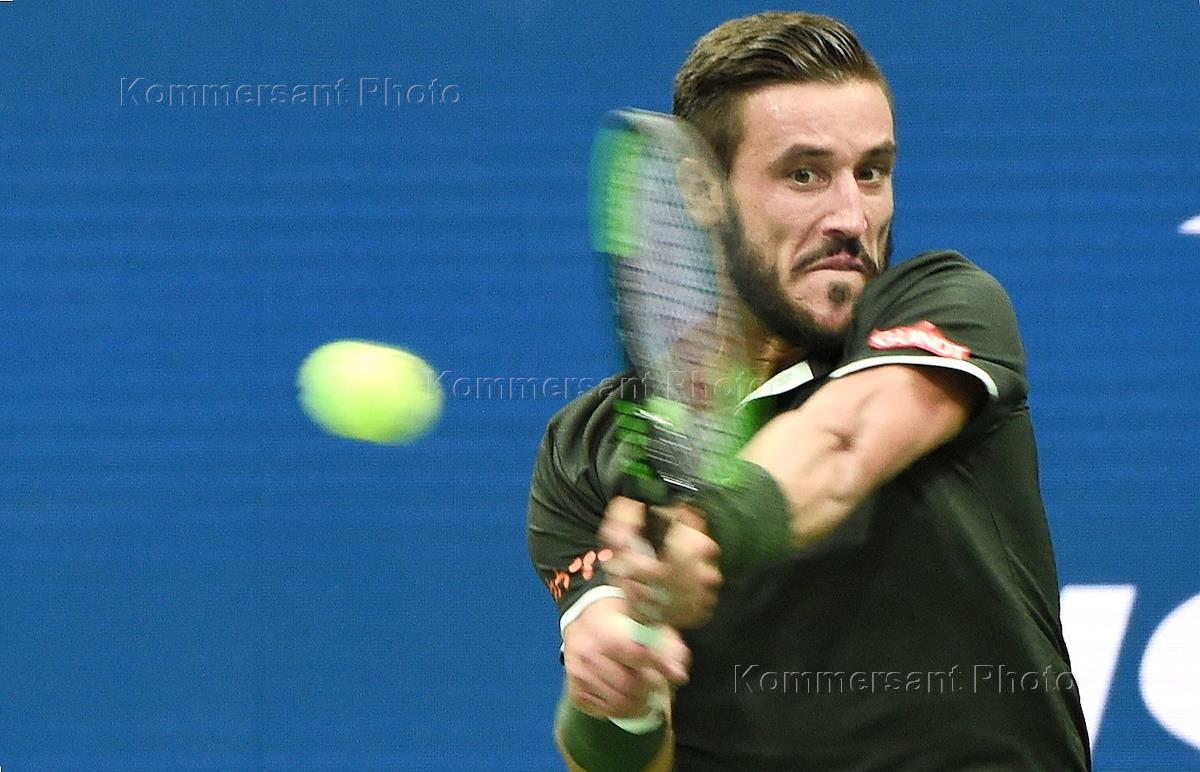 Открытый чемпионат США (US Open) 2019 по теннису. Боснийский теннисист Дамир Джумхур во время матча…
