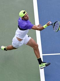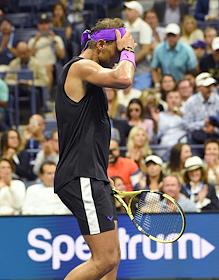 Открытый чемпионат США (US Open) по теннису. Испанский теннисист Рафаэль Надаль во время матча с…