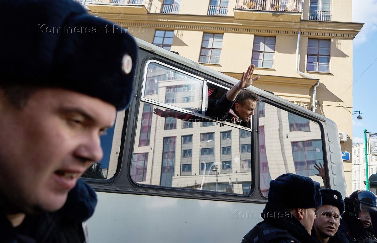 Police detain protesters during anti-corruption protest against Prime Minister Dmitry Medvedev after…