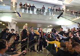 Россиянка Мария Бутина (в центре), экстрадированная из США после отбытия срока заключения в…