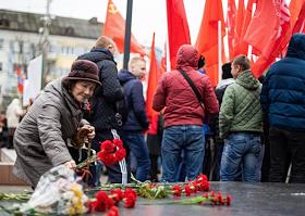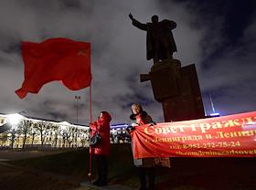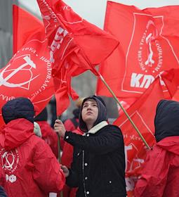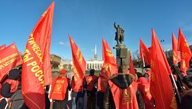 Митинг в честь 102-й годовщины революции, организованный КПРФ, прошел на площади Ленина у…