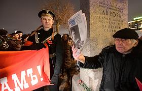 Несогласованная акция сторонников КПРФ возле крейсера "Аврора" в день 102-й годовщины Октябрьской…