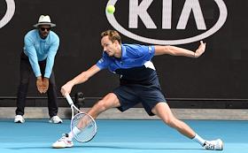 Теннисный турнир Australian Open. День восьмой. Российский теннисист Даниил Медведев во время матча…