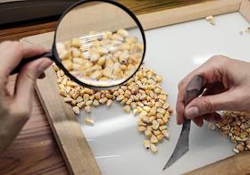 Технический анализ зерна кукурузы. Лаборант проводит проверку зерен кукурузы на сорную и зерновую…