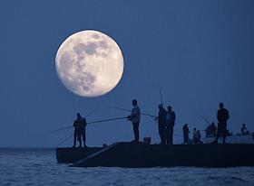 Виды Камчатки. Мужчина и женщина в термальном бассейне во время заката.