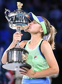Australian Open. Day 13. Women's Finals. Sofia Kenin of the U.S. poses during the awarding ceremony…