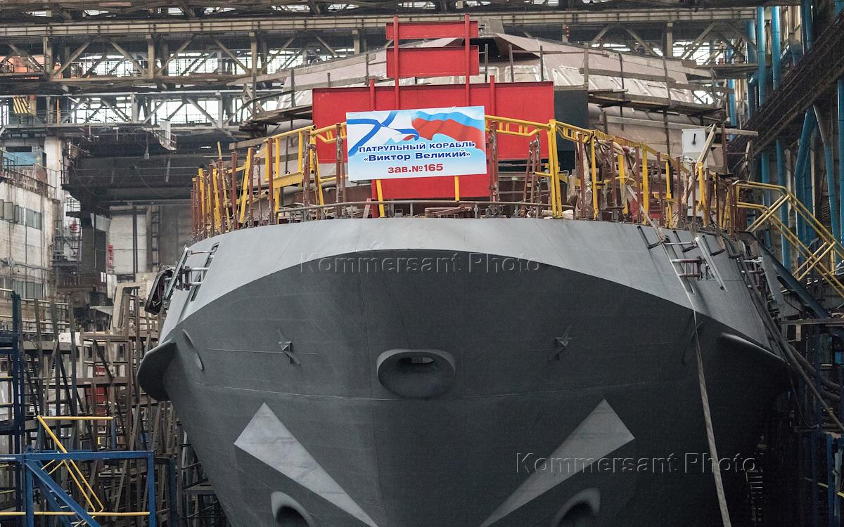 Keel laying of the project No. 03622 Chaika Seagull Ship equipped with the engines running on…