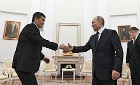 Russian-Kyrgyz talks in the Kremlin. Russian President Vladimir Putin (right) and President of…