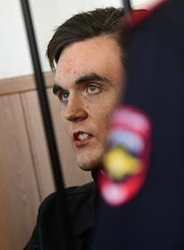 Yuliy Boyarshinov (second from left) and Viktor Filinkov (left), accused under Part 2 of Art. 205.4…