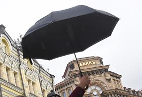 Жанровая фотография. Зонт и здание Московского международного торгового банка на углу улиц Кузнецкий…