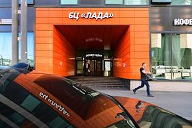 Entrance to the ten-story Lada Business Center on Energetikov Prospect 3A.