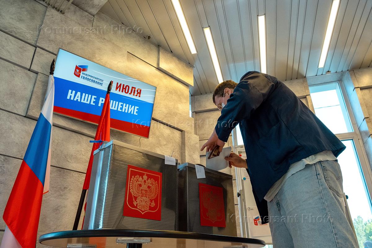Общероссийское голосование по поправкам к Конституции России. Работа избирательного участка на…