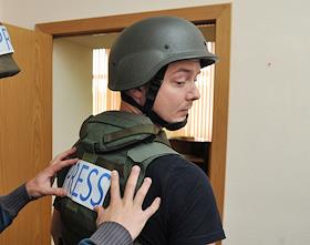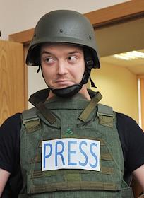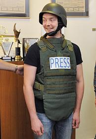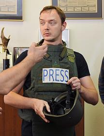 Журналист издательского дома (ИД) "Коммерсантъ" Иван Сафронов на церемонии вручения бронежилетов и…