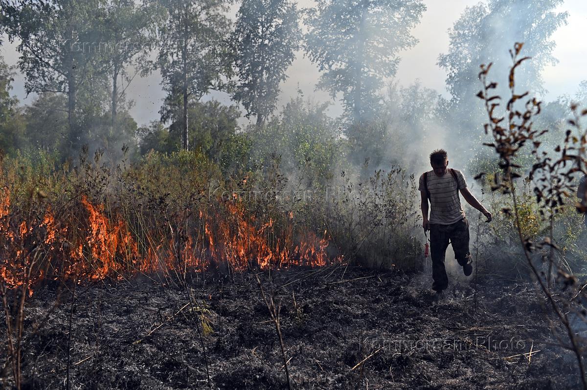 Лесные пожары в Омской области. Специально обученная бригада работников лесхоза поселка Большие Уки…
