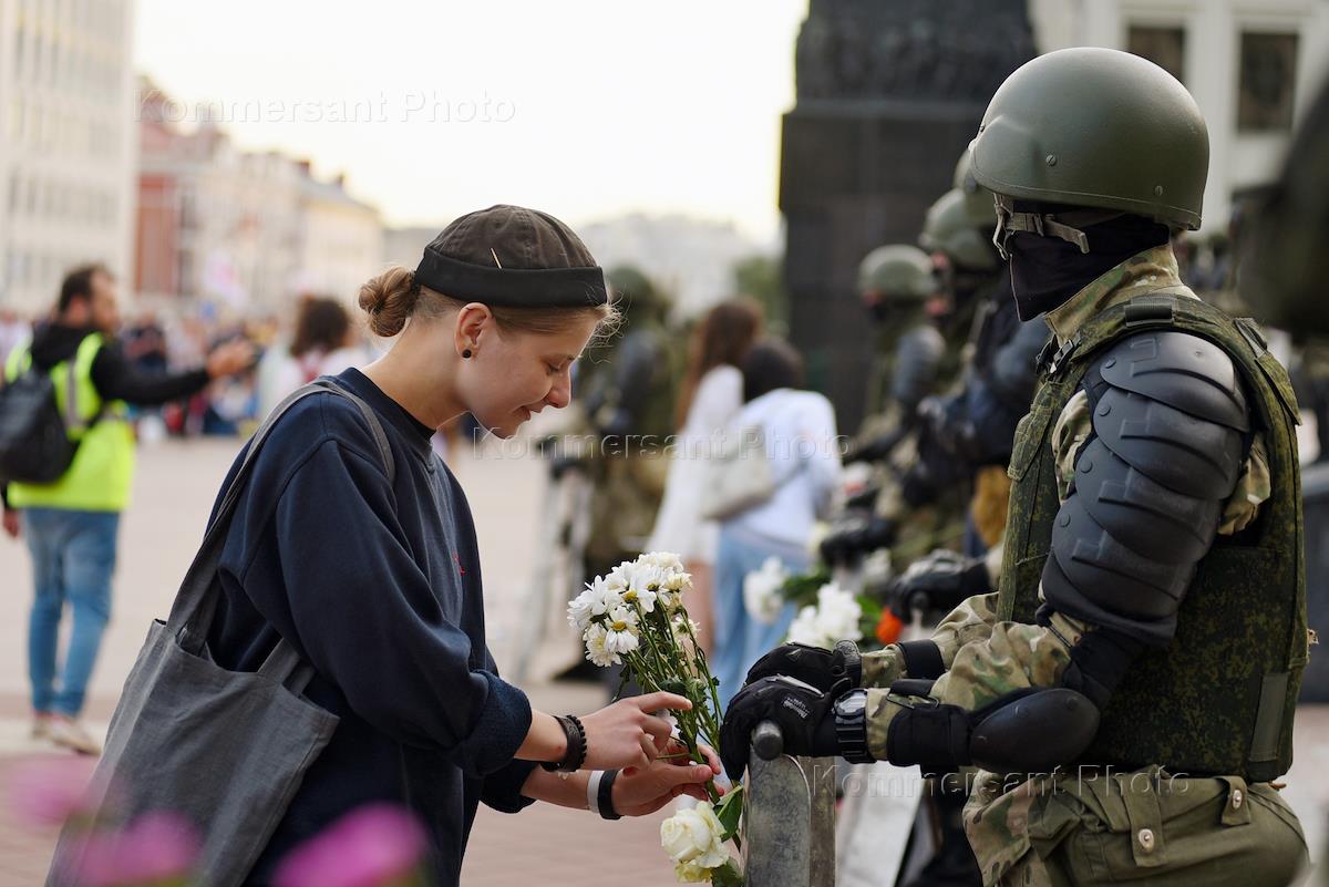 Протестные акции в Минске. Протестующие и сотрудники правоохранительных органов во время протестных…