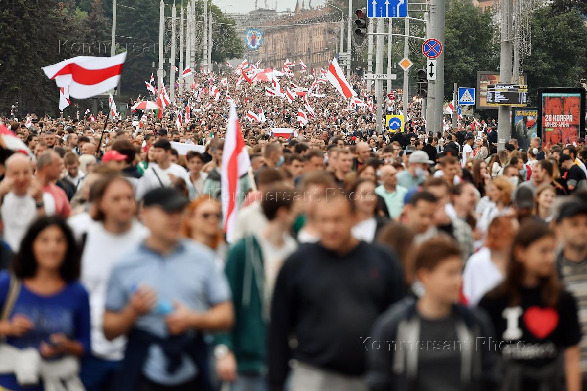 March for the New Belarus, a protest rally of opposition supporters in Bobruisk. People protesting…