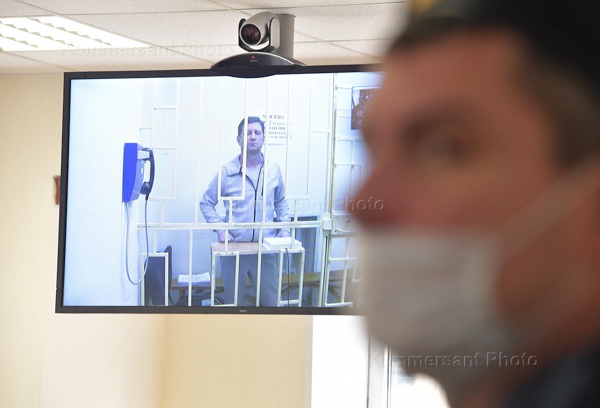 Бывший губернатор Хабаровского края Сергей Фургал (на экране), обвиняемый в организации убийств…