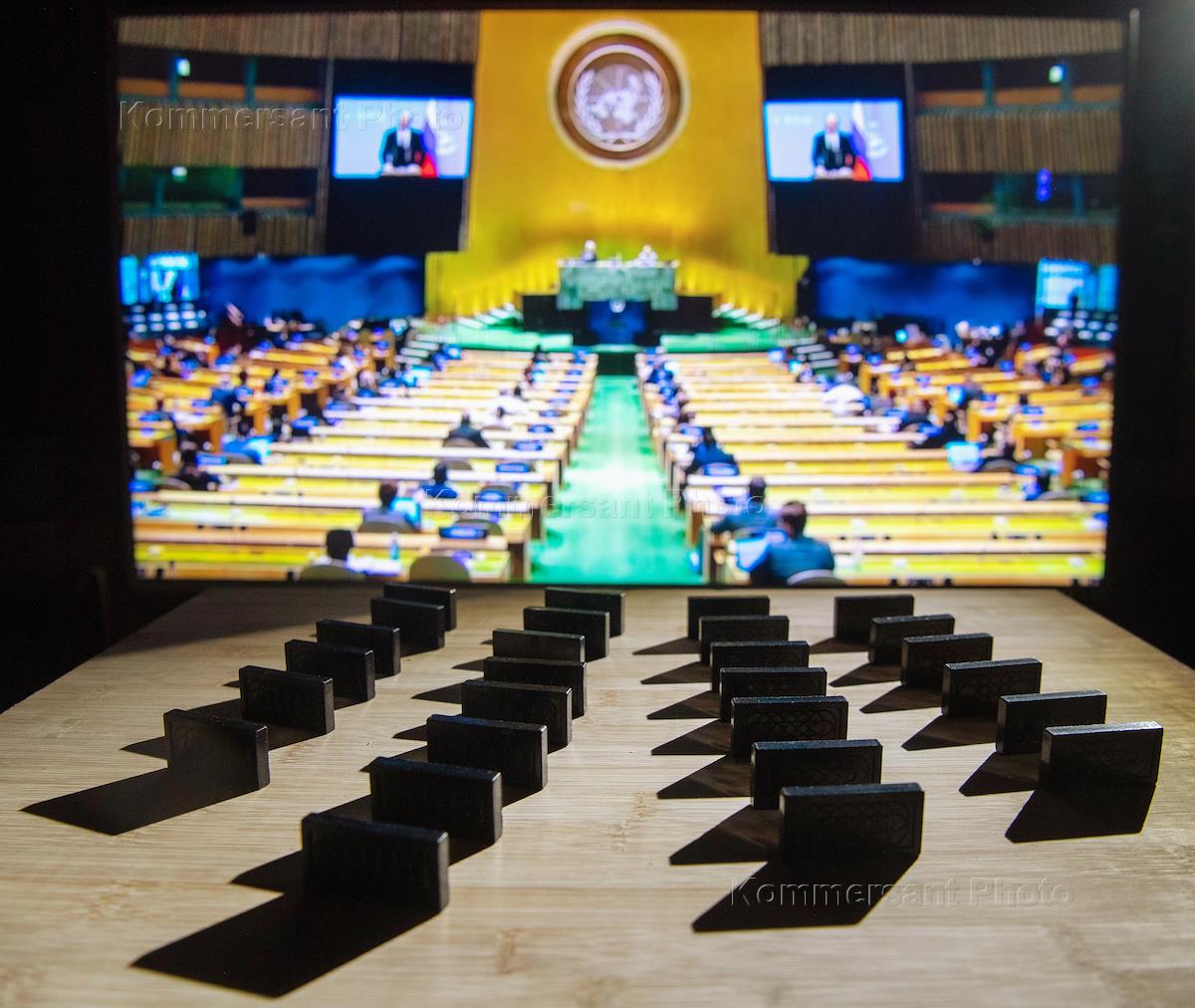 Жанровая фотография. Трансляция 75-й сессии Генеральной ассамблеи Организации Объединенных Наций.