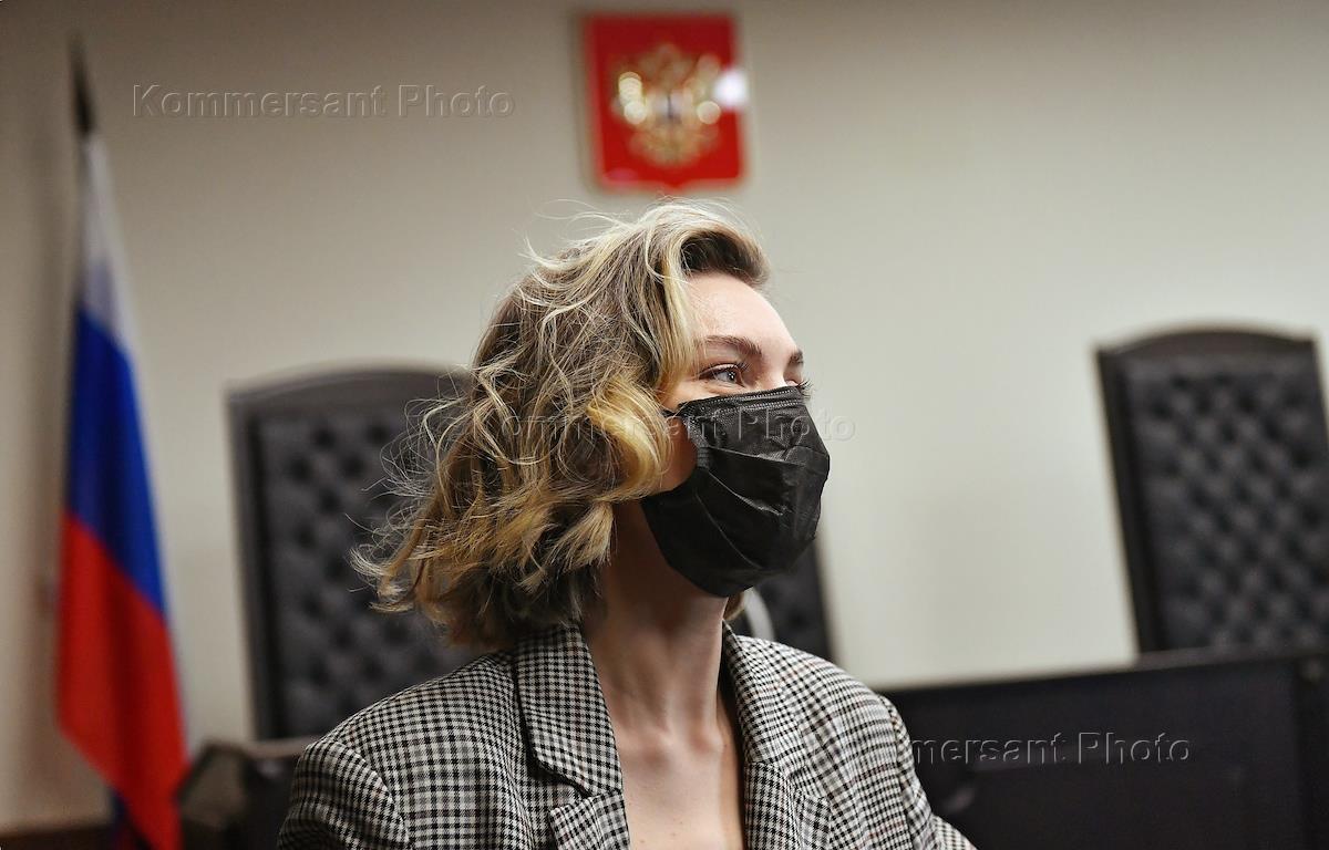 Корреспондент ИД "Коммерсантъ" Кира Дюрягина во время заседания Мещанского районного суда.