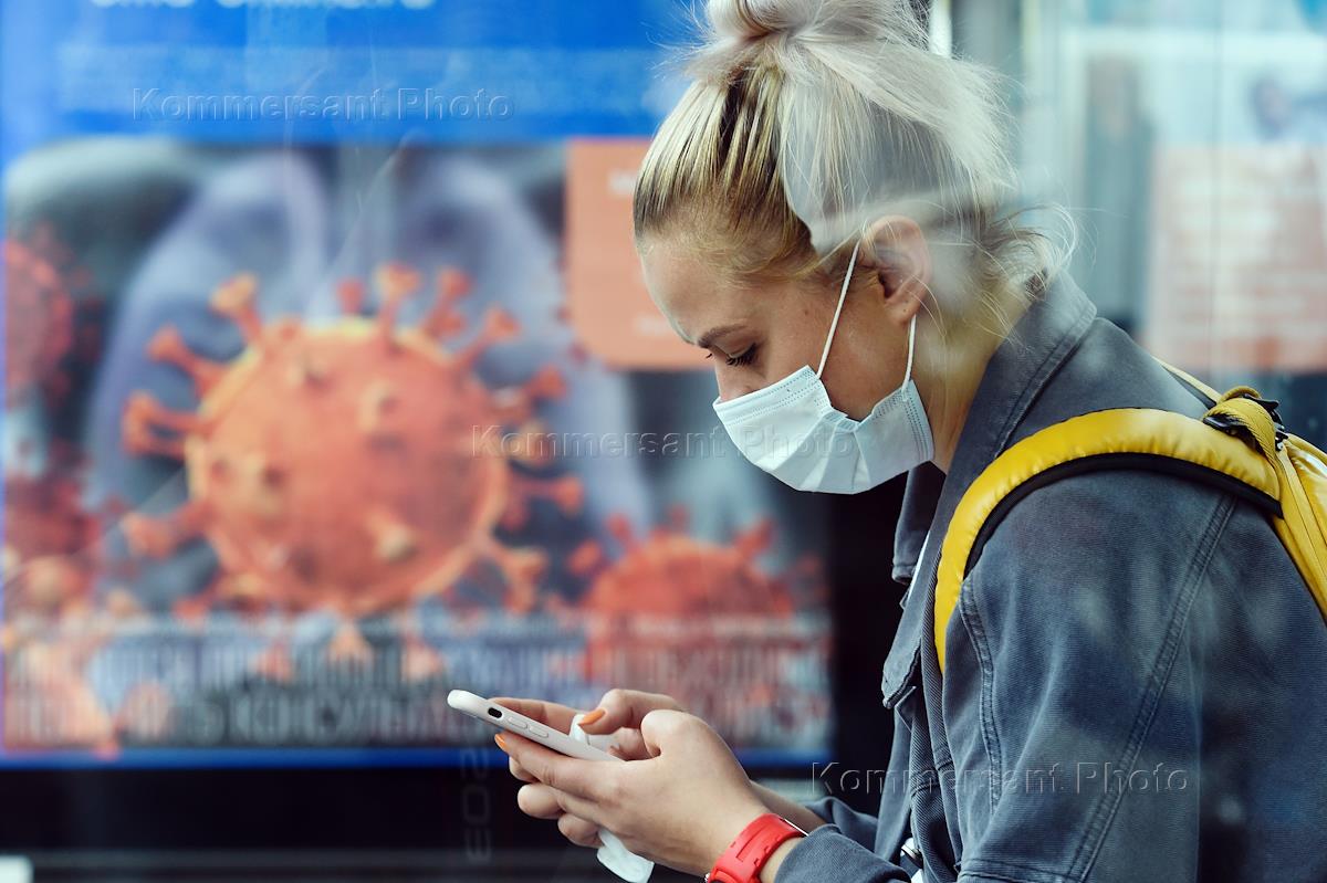 Жанровая фотография. Пассажир в медицинской маске в московском метро.