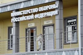 Жанровая фотография. Медицинский работник в защитном костюме у входа в здание филиала Министерства…