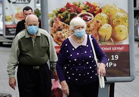 Жанровая фотография. Пожилые люди в медицинских масках на улице.
