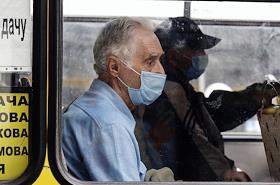 Жанровая фотография. Пассажиры в медицинских масках в автобусе.