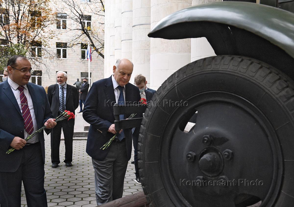 President of Abkhazia Aslan Bzhania (right) and Acting Rector of MADI Andrei Kller (left) during the…
