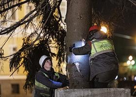 Подготовка к празднованию Нового года. Установка главной новогодней елки Санкт-Петербурга на…