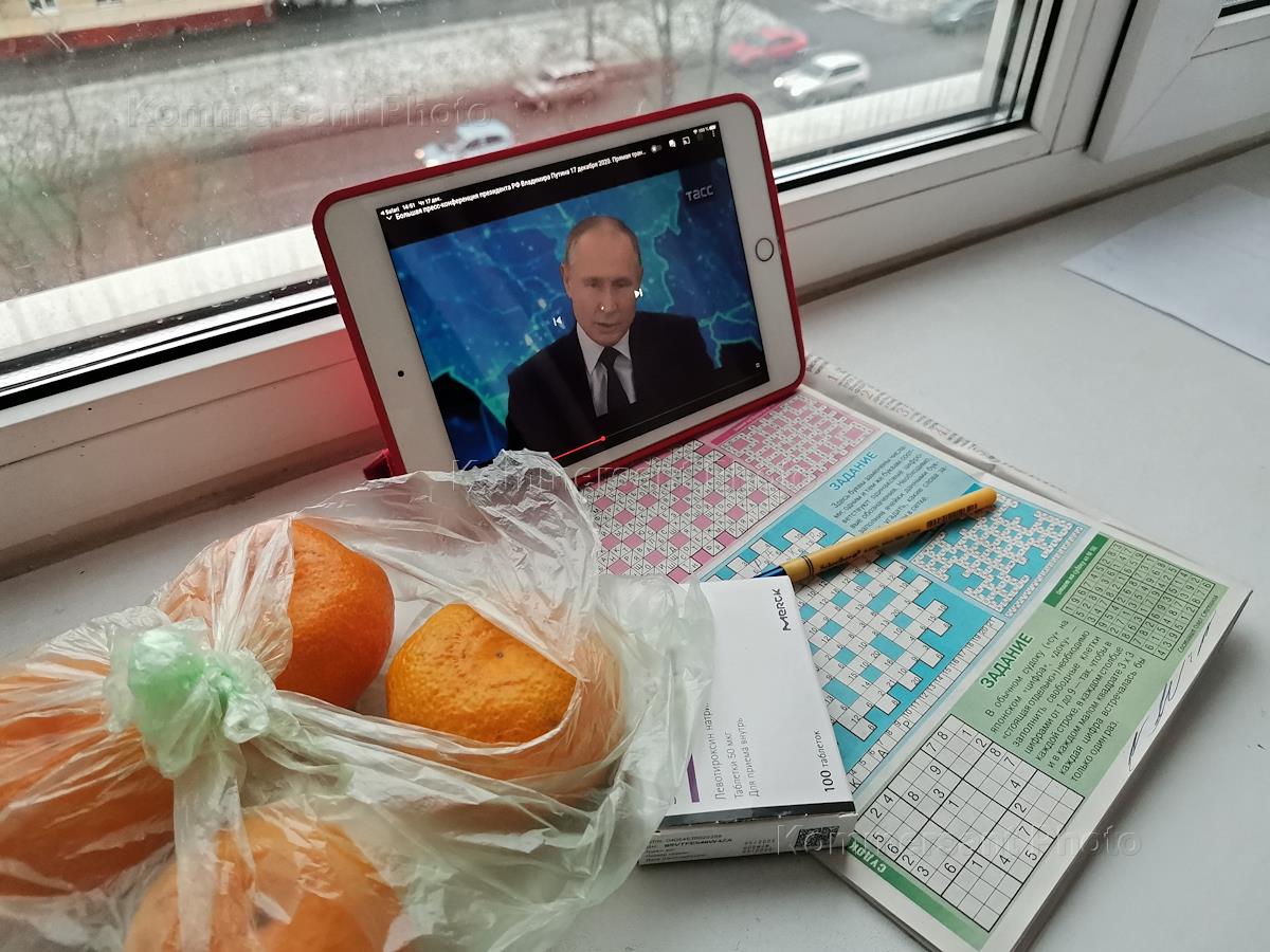 Жанровая фотография. Трансляция ежегодной пресс-конференции президента России Владимира Путина по…