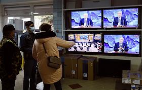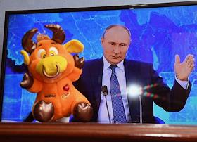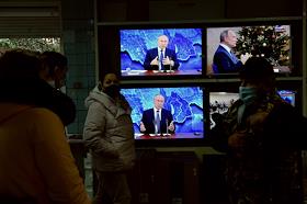 Жанровая фотография. Трансляция ежегодной пресс-конференции президента России Владимира Путина.