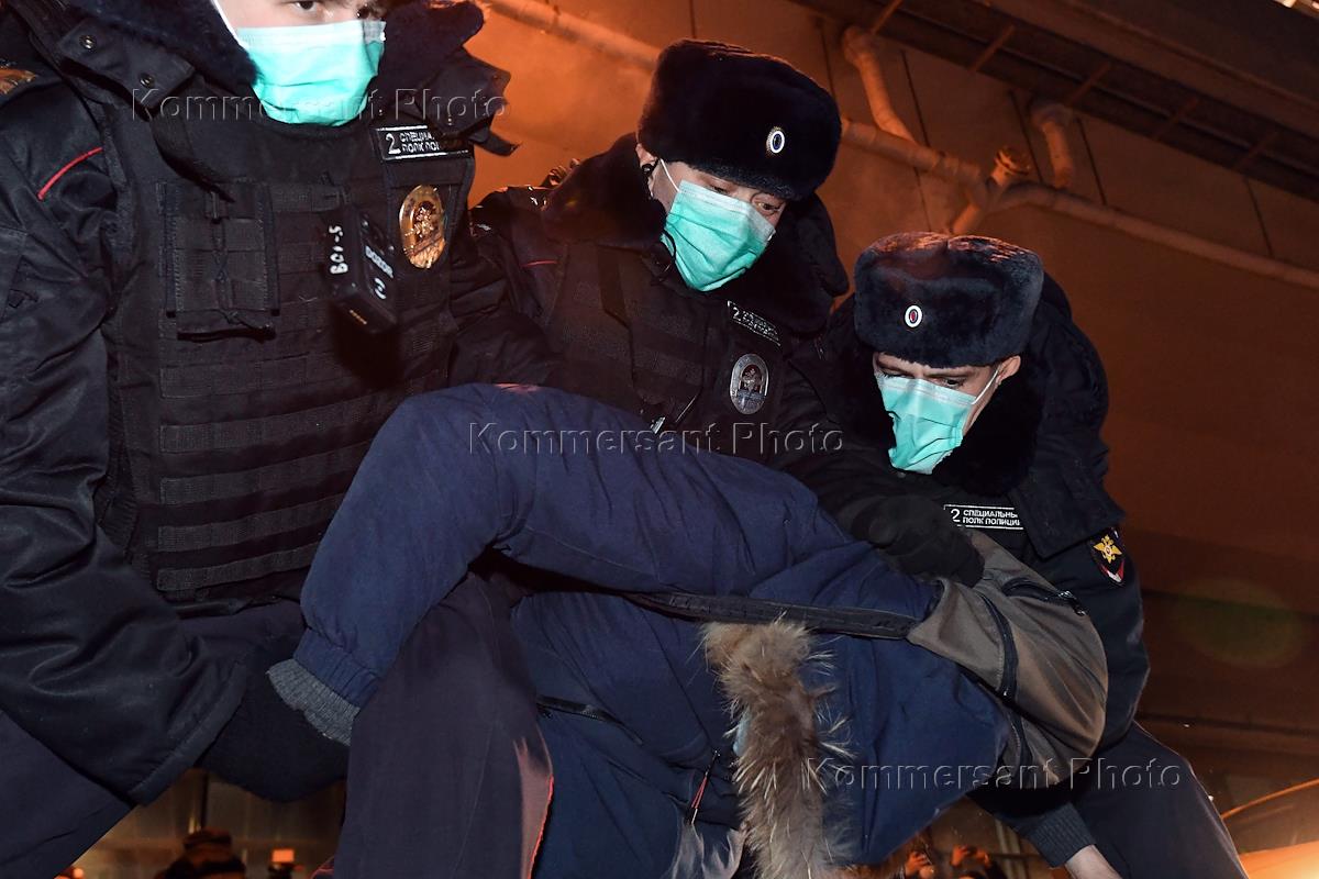 Сотрудники полиции во время задержания сторонника политика Алексея Навального в аэропорту Внуково.
