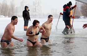 Праздник Крещения Господня. Крещенские купания в гидропарке в Киеве.