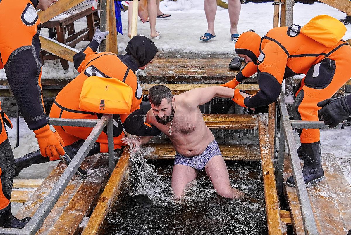 Праздник Крещения Господня. Крещенские купания в Ольгином пруду в Петергофе.