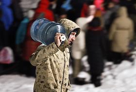 Праздник Крещения Господня. Освящение воды. Жанровая фотография. Мужчина с бутылкой воды.
