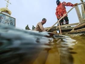 Праздник Крещения Господня. Крещенские купания на пляже Петропавловской Крепости.