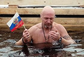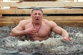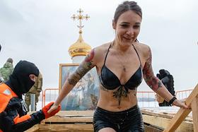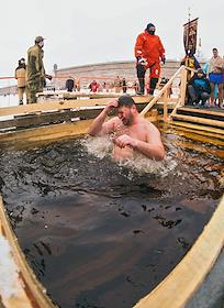 Праздник Крещения Господня. Верующие во время крещенских купаний на Аптекарском острове.
