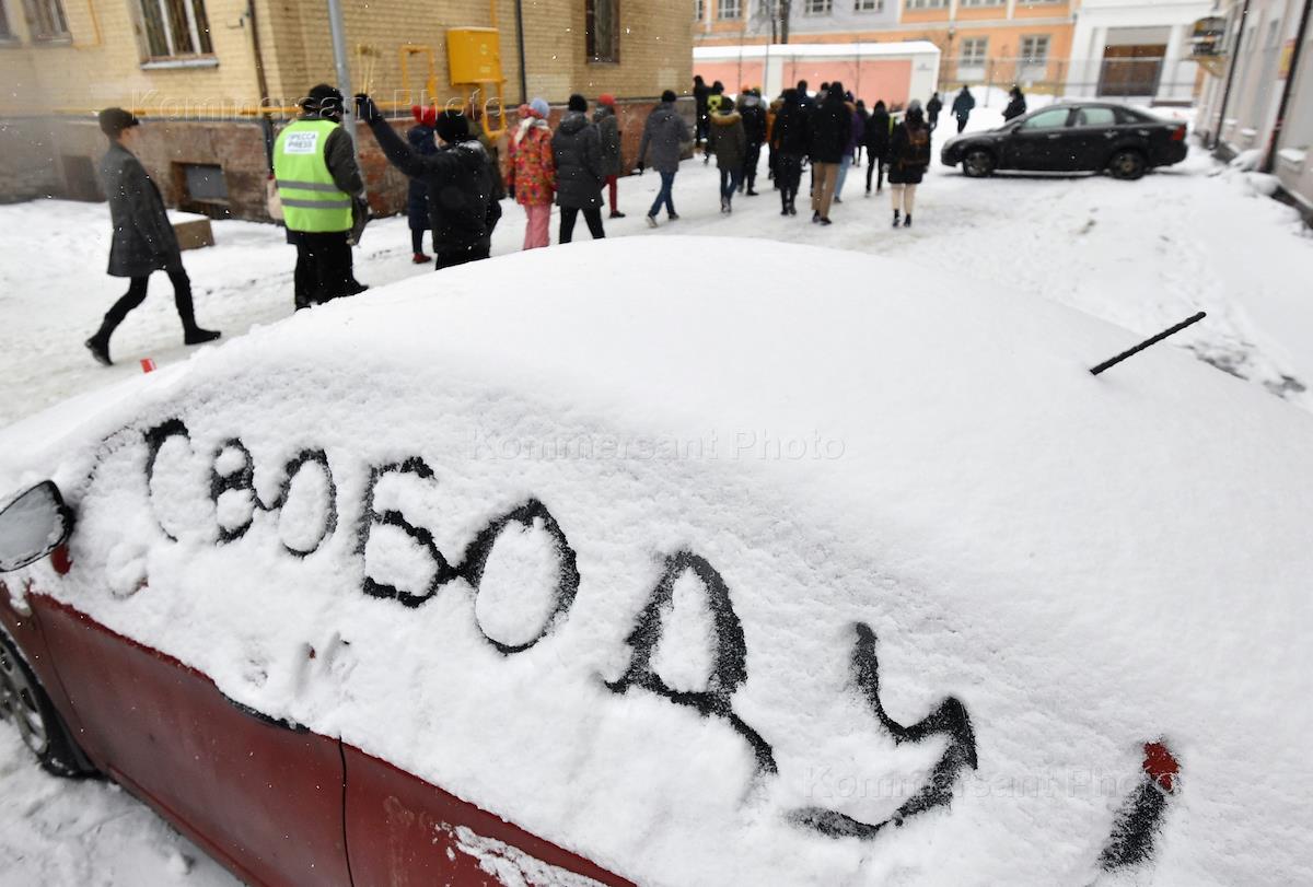 Несогласованная акция сторонников политика Алексея Навального. Жанровая фотография. Надпись…