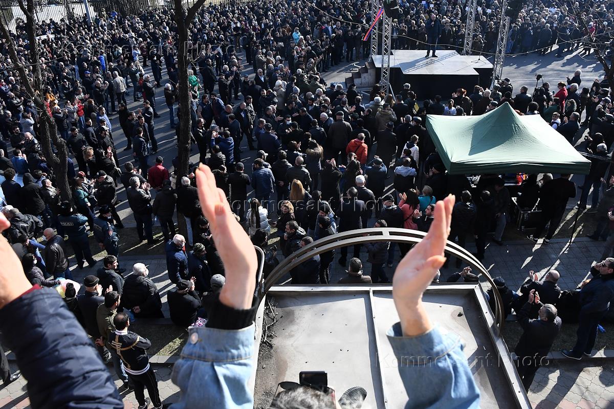 Политическая ситуация в Ереване. Сторонники оппозиции во время протестного митинга у здания…