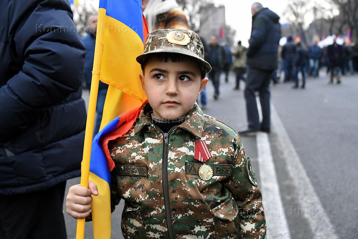 Политическая ситуация в Ереване. Участники во время митинга оппозиции в центре Еревана. После…