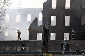 The aftermath of a fire in the Nevskaya Manufactory on Oktyabrskaya Embankment.