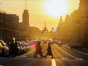 Views of St. Petersburg. Genre photography. Nevsky Prospect in the evening.