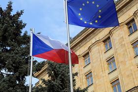 Виды Москвы. Здание посольства Чешской Республики. Флаги Чехии и Евросоюза.