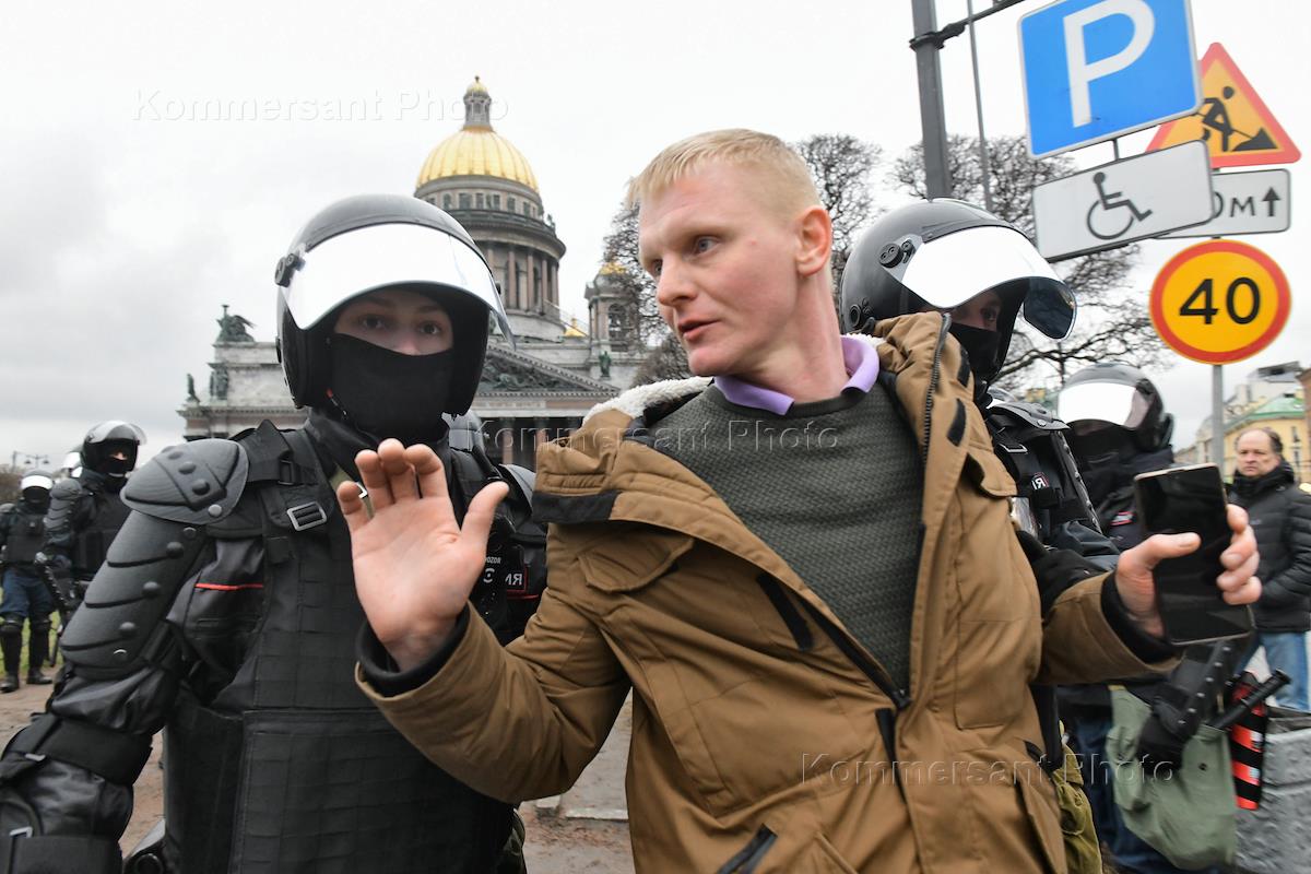 Несогласованная акция в поддержку оппозиционера Алексея Навального в центре города. Мужчины в…